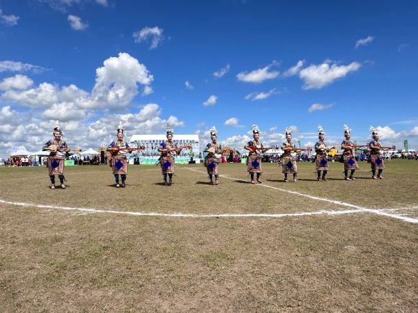 此次友谊赛不仅是一场体育竞技的较量,更是两地民族文化交流与融合的桥梁。上午九点整,一场盛大的牧民马队欢迎仪式拉开序幕,牧民身着传统服饰,策马奔腾,欢迎远方来的客人。随后,来自锡尼河东、西苏木和呼伦贝尔市的文艺团队为远道而来的客人和现场观众带来了精彩的开场表演,并为球员们献上哈达,瞬间“点燃”了现场氛围。
