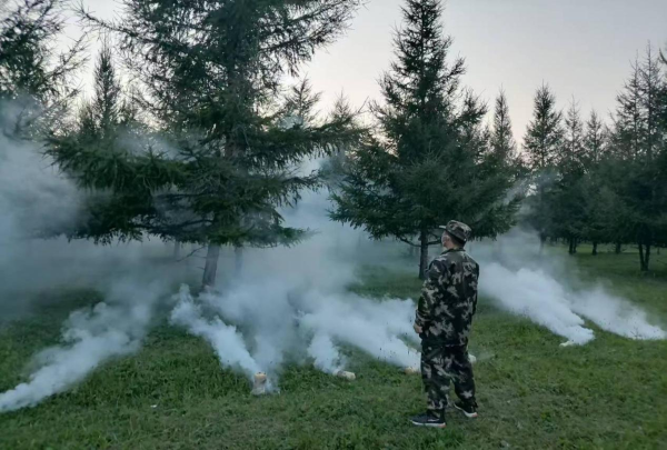 8月23日,大雁镇农牧业技术推广服务中心带领神华大雁公司工作人员对三矿南部遭虫危害林地进行消杀工作。消杀工作通过药烟释放方式进行,当晚已将此区域全部覆盖消杀。
