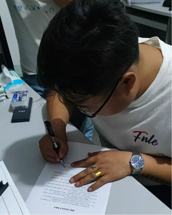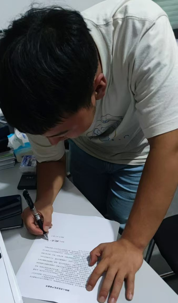 随后,该测绘公司工作人员签订了《安全生产承诺书》。该承诺书共分为九项,分别从安全生产目标、贯彻执行法律法规、单位日常管理工作、严格落实责任主体、完善机构设置和规章制度、加强日常监管理力度、明确隐患治理措施、做好外业管理、重视教育培训等多个方面,全方位明确了测绘人员需要注意的安全生产事项。