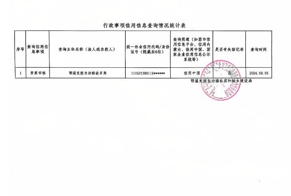 行政事项信用信息查询情况统计表