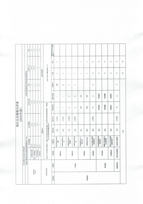 本项目绩效自评得分100分,等级为A。