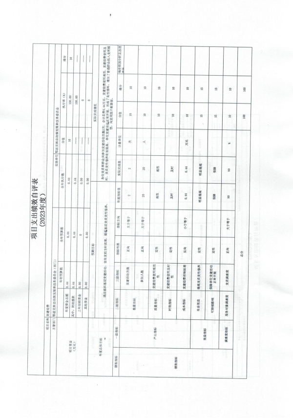 2.党建经费项目自评综述:根据年初设定的绩效目标,项目自评得分100分。全年预算数为0.44万元,执行数为0.44万元,完成预算的100%。项目绩效目标完成情况:各位党员和群众共参加党建活动次数2次,合计花费0.44万元,党建经费使用规范,党建经费使用及时,党员党性修养有效提高,单位党建活动正常开展,形成了良性循环,增加了普通群众的入党积极型,向党周围不断靠拢。发现的主要问题及原因:对绩效工作了解不够深入,针对指标不理解,有待进一步提高绩效工作水平。下一步改进措施:认真学习绩效管理知识,积极参加培训,提高工作人员的绩效意识以及绩效工作水平。