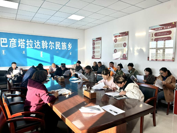 近日,巴彦塔拉达斡尔民族乡召开解决草原过牧问题推进会。乡党委副书记、政府乡长金俊英主持会议,各嘎查包片领导、党支部书记、驻村“第一书记”以及乡综合行政执法队队长敖伟、乡农牧业技术推广与服务中心主任伊兰、工作人员瓦仁参加会议。
