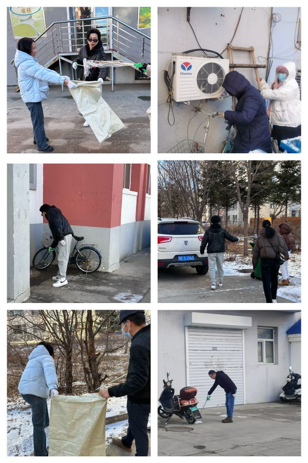 活动中,全体党员干部职工深入巴彦托海镇艾里社区南达汗小区,大家分工明确,手持清理工具,对小区的脏污、垃圾进行全面清理,大家发挥不怕苦、不怕累、不怕脏的志愿者精神,齐心协力为辖区居民营造一个整洁、文明、和谐、舒适的生活环境。