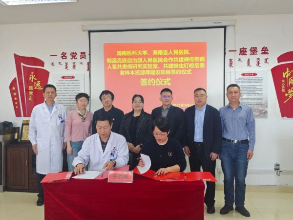 近日,海南医科大学、海南省人民医院、鄂温克族自治旗人民医院合作共建蜱传疾病人畜共患病研究实验室、共建蜱虫叮咬后患者样本资源库建设项目签约仪式在旗人民医院举行,旗政府副旗长敖丽出席仪式。
