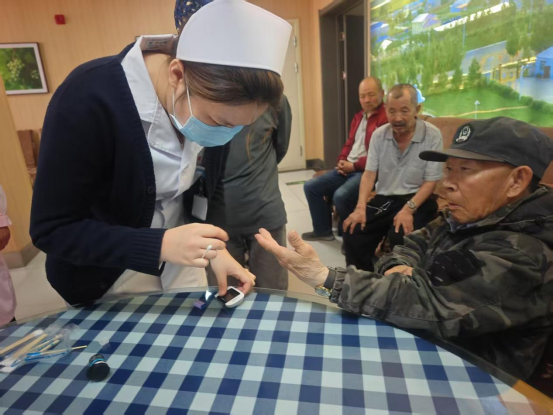 活动当日,蒙医医院的医护人员早早来到养老机构,迅速搭建起临时义诊台,有序地为老人们提供服务。义诊内容丰富多样,涵盖了血压、血糖测量、蒙医理疗等多项基础健康检查项目。医护人员们耐心地询问每一位老人的身体状况,仔细聆听他们的诉求,针对老年人常见的慢性病,如高血压、糖尿病、心血管疾病等,进行了详细的诊断和用药指导,并为他们制定个性化的健康管理方案。现场,医护人员还普及春季养生、合理饮食、运动锻炼等健康知识,引导老人们树立正确的健康观念,提高自我保健意识。