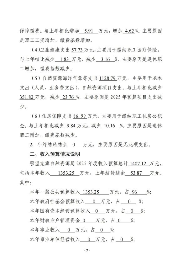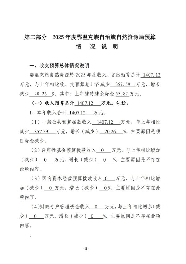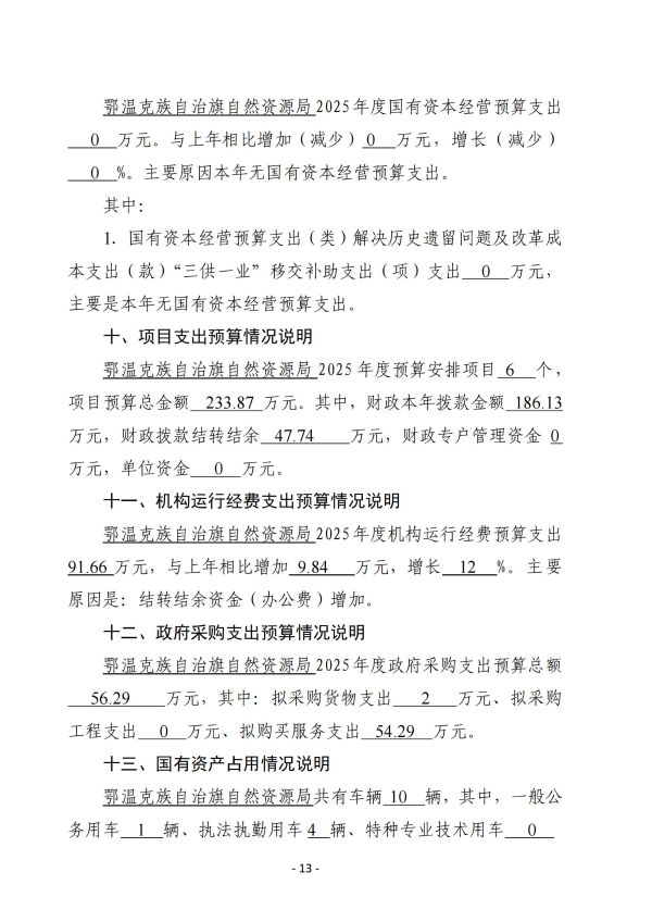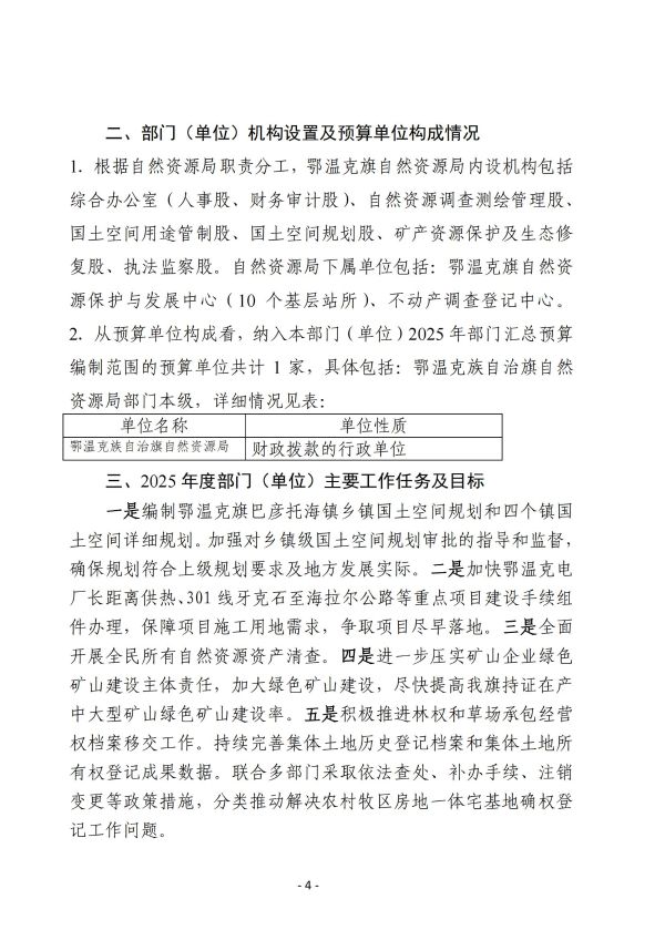 鄂温克族自治旗自然资源局2025年预算公开