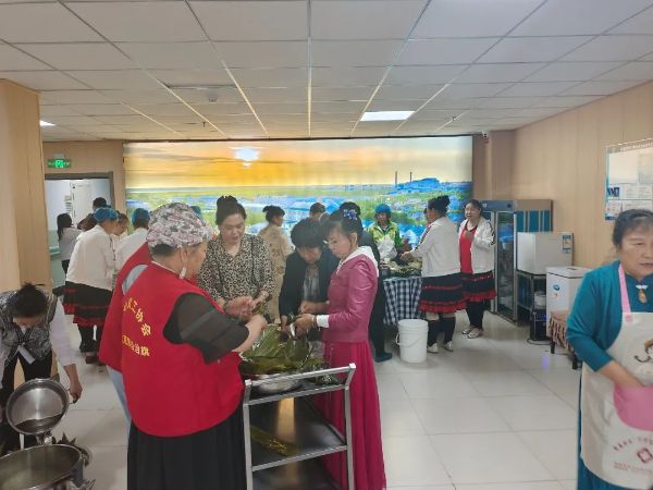 活动当日,志愿者们早早来到旗综合社会福利中心,将提前准备好的糯米、粽叶、红枣、绳子等包粽子材料整齐摆放。活动开始,志愿者们与中心工作人员、老人们围坐在一起,共同包起了粽子。现场氛围其乐融融,有经验的老人和志愿者耐心指导新手,折粽叶、装糯米、放馅料、扎绳,一道道工序有条不紊,欢声笑语回荡在整个活动场地。在包粽子的过程中,志愿者们还陪老人们聊天,听他们讲述过去的故事,了解他们的生活状况和需求,给予他们心理上的关怀与陪伴。除了包粽子,现场还安排了精彩的文艺表演,唱歌、乐器演奏等节目轮番上演,为中心老人们带来了一场视听盛宴,赢得了阵阵掌声和喝彩声。