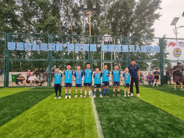 三四年级比赛鄂温克第一实验小学闪电队夺冠、亚军阿木古郎一校队、季军0470俱乐部敖德队。