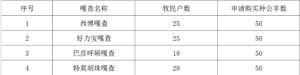 鄂温克族自治旗锡尼河西苏木2025年度中央财政牧区种公羊良种补贴项目种公羊申购统计表