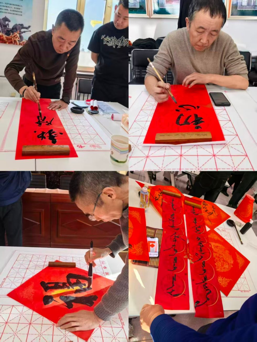 活动现场年味浓郁,红彤彤的春联纸整齐铺展,笔墨砚台依次排开。十余位书法老师各展所长,笔走龙蛇间,行书的流畅、楷书的端庄、隶书的古朴跃然纸上。“春回矿区千山秀,福泽各族万户欢”“挥汗检修保生产,凝心聚力庆华章”等寓意吉祥的春联,既饱含对新年的美好期许,又融入企业发展与民族团结的真挚祝愿。各族干部职工群众有序排队,或挑选经典联句,或提出个性化创作需求,老师们有求必应,现场挥毫创作近百余副春联与“福”字,墨香与欢声笑语交织,勾勒出浓郁的节日图景。