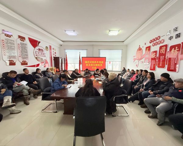 1月6日,锡尼河西苏木党政机关党支部召开党员大会。党支部书记主持会议,党支部党员参加会议。