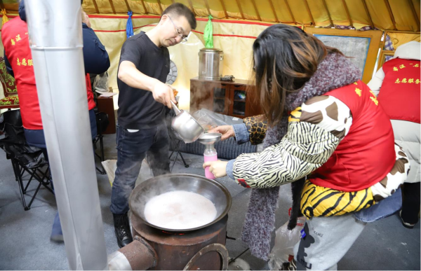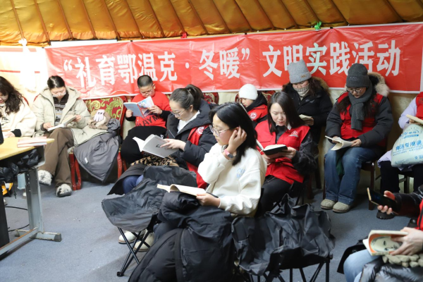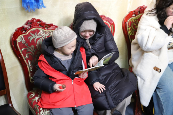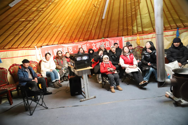 “围炉阅读”环节成为传递知识与民族团结的温馨空间。在蒙古包内,炉火熊熊燃烧,驱散了冬日的严寒,也让志愿者们的心紧紧贴在一起。大家纷纷拿出自带的图书,既有经典名著、现代文学佳作,也有民间故事集、传统习俗绘本等经典书籍。围坐炉边,志愿者们或静心品读,或轻声分享阅读感悟。孩子们捧着色彩斑斓的绘本,用稚嫩的声音轮流朗读,小朋友们相互请教、彼此交流,在书香中播下友谊的种子。书香与炉火的暖意交织,民族文化与思想智慧碰撞,构成一幅各民族干部群众共学共进、相亲相爱的温馨画卷。
