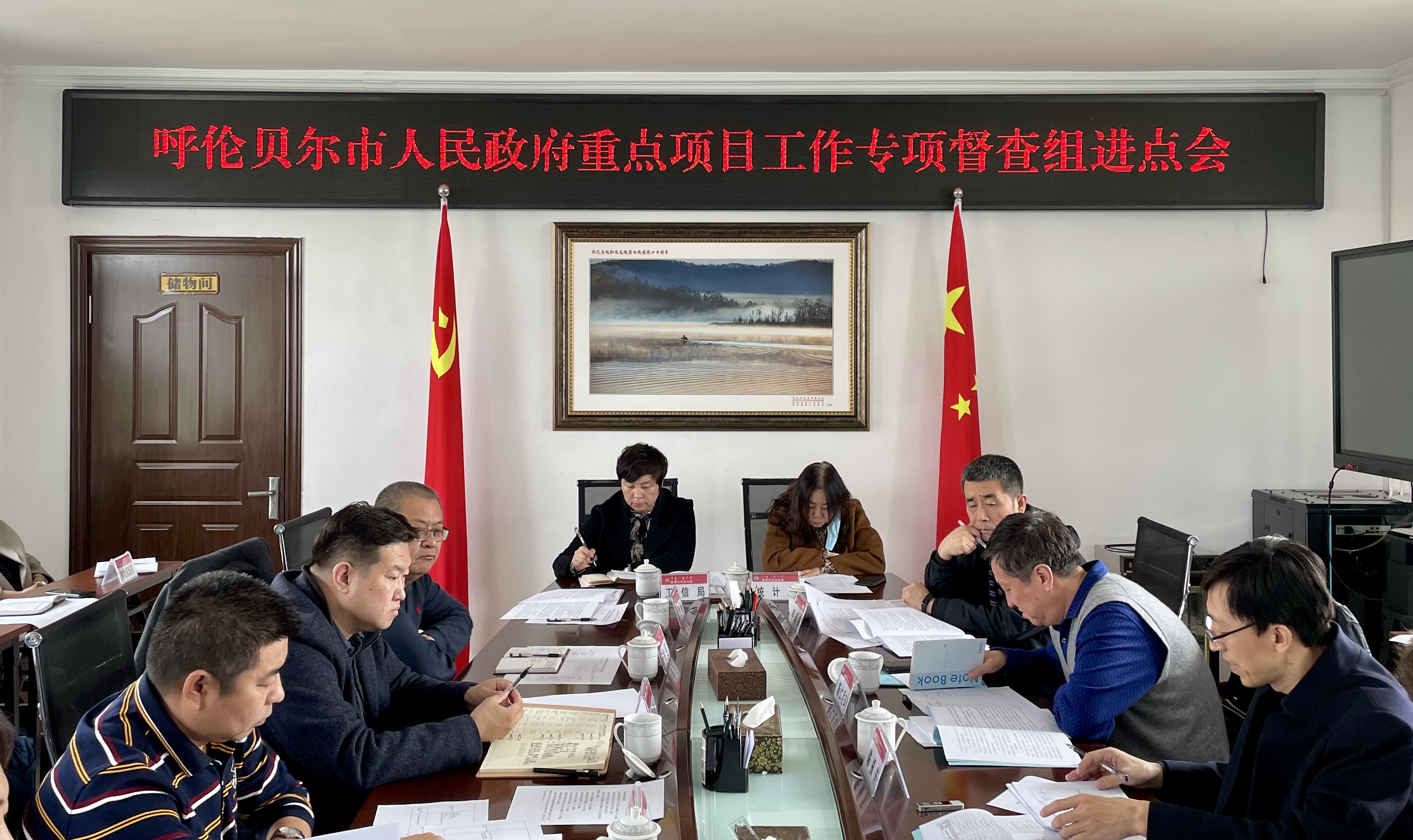 旗政府副旗长杜晓光向督查组简要汇报了我旗相关工作开展情况。在重点项目推进上,2021年我旗安排重点项目35个,总投资77.36亿元,年度投资41.17亿元。其中:市级重点项目17项,总投资68.04亿元,年度投资37.21亿元。在“能耗”双控落实上,我旗通过采取全面加强组织领导、加强重点用能企业监管、摸清用能底数强化源头管控等务实举措,全力以赴完成能耗“双控”目标任务,确保一季度能耗总量不超过上年同期水平。杜晓光副旗长还现场回答了督查组提出的问题并表示针对此次专项督查中发现的问题,旗政府各部门要举一反三,落实责任,抓好整改。参加会议的旗政府有关部门负责人就城市建设管理、“能耗”双控、营商环境优化等作了补充汇报和档案资料佐证。