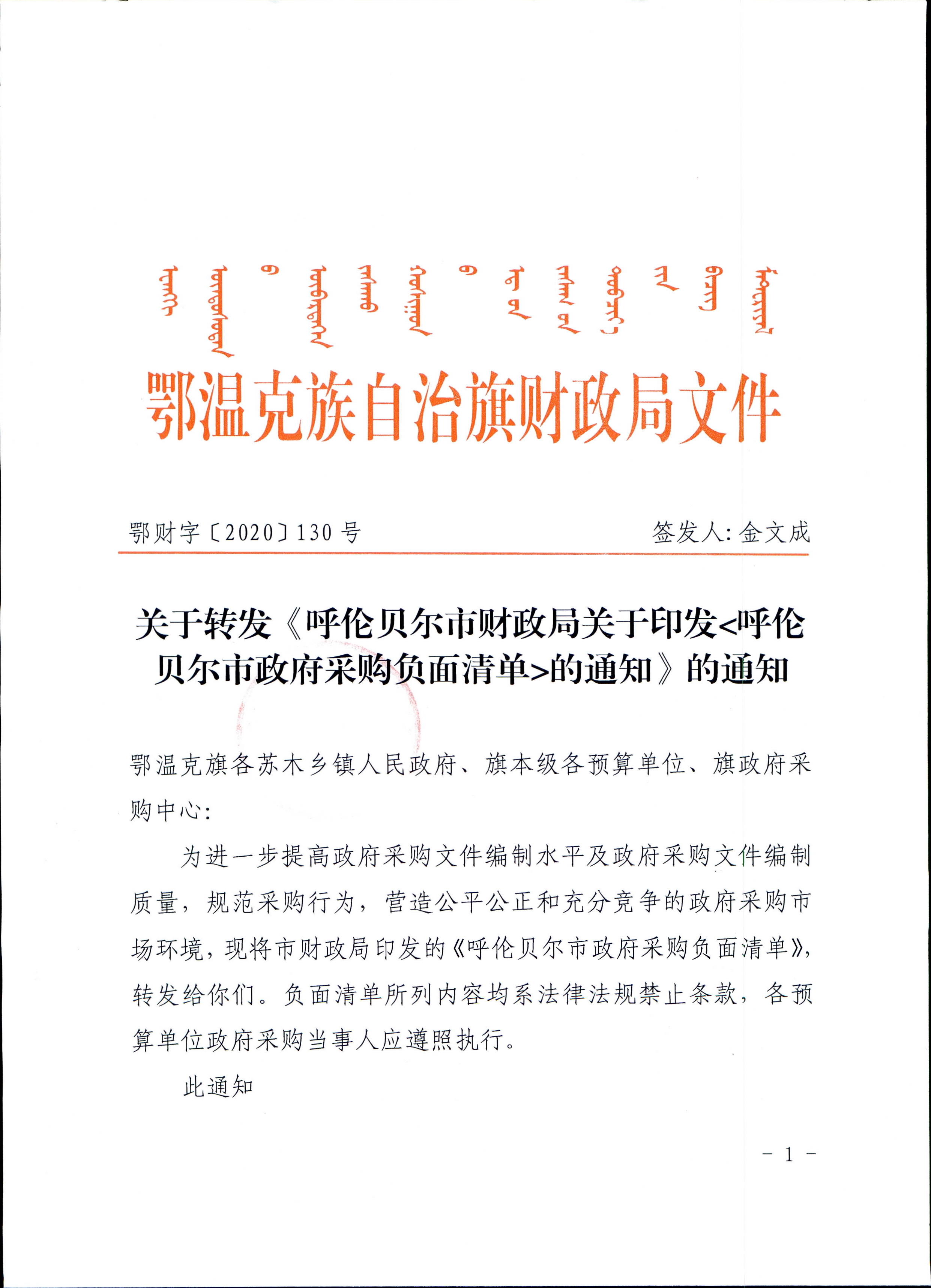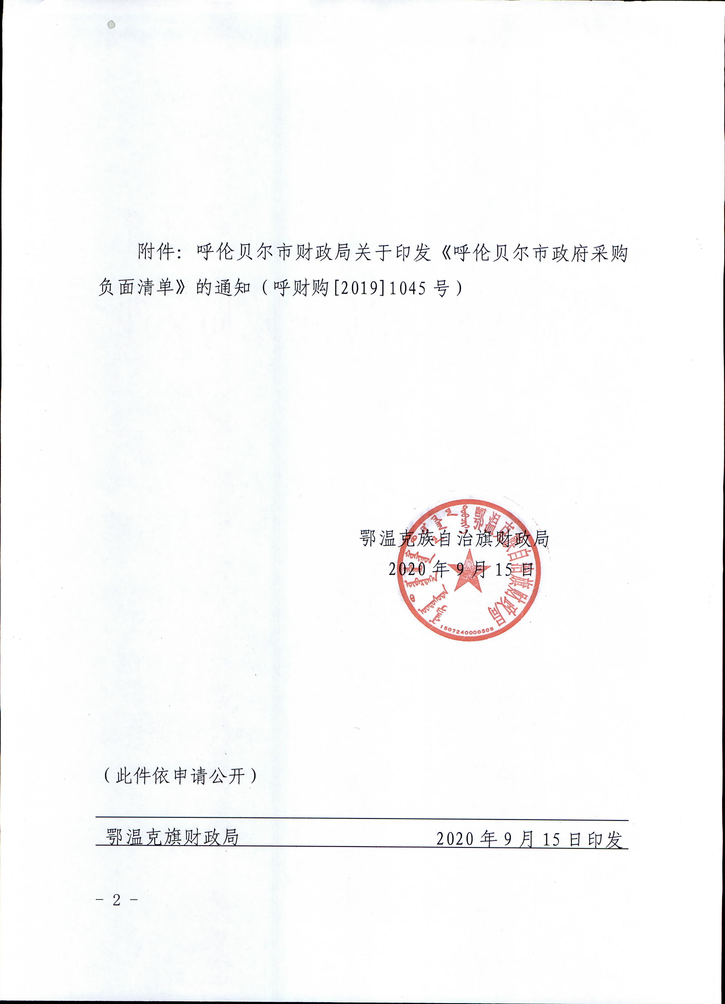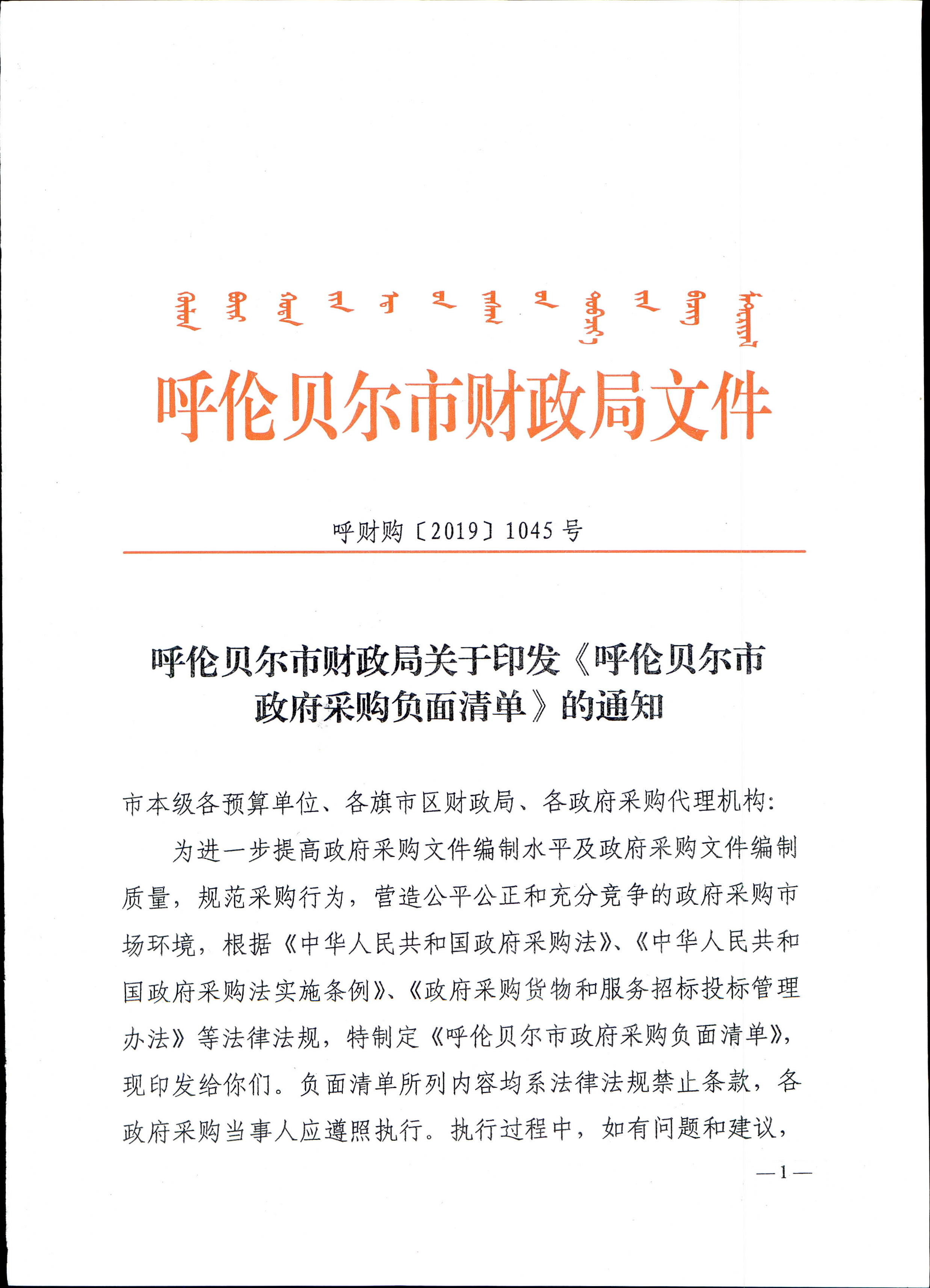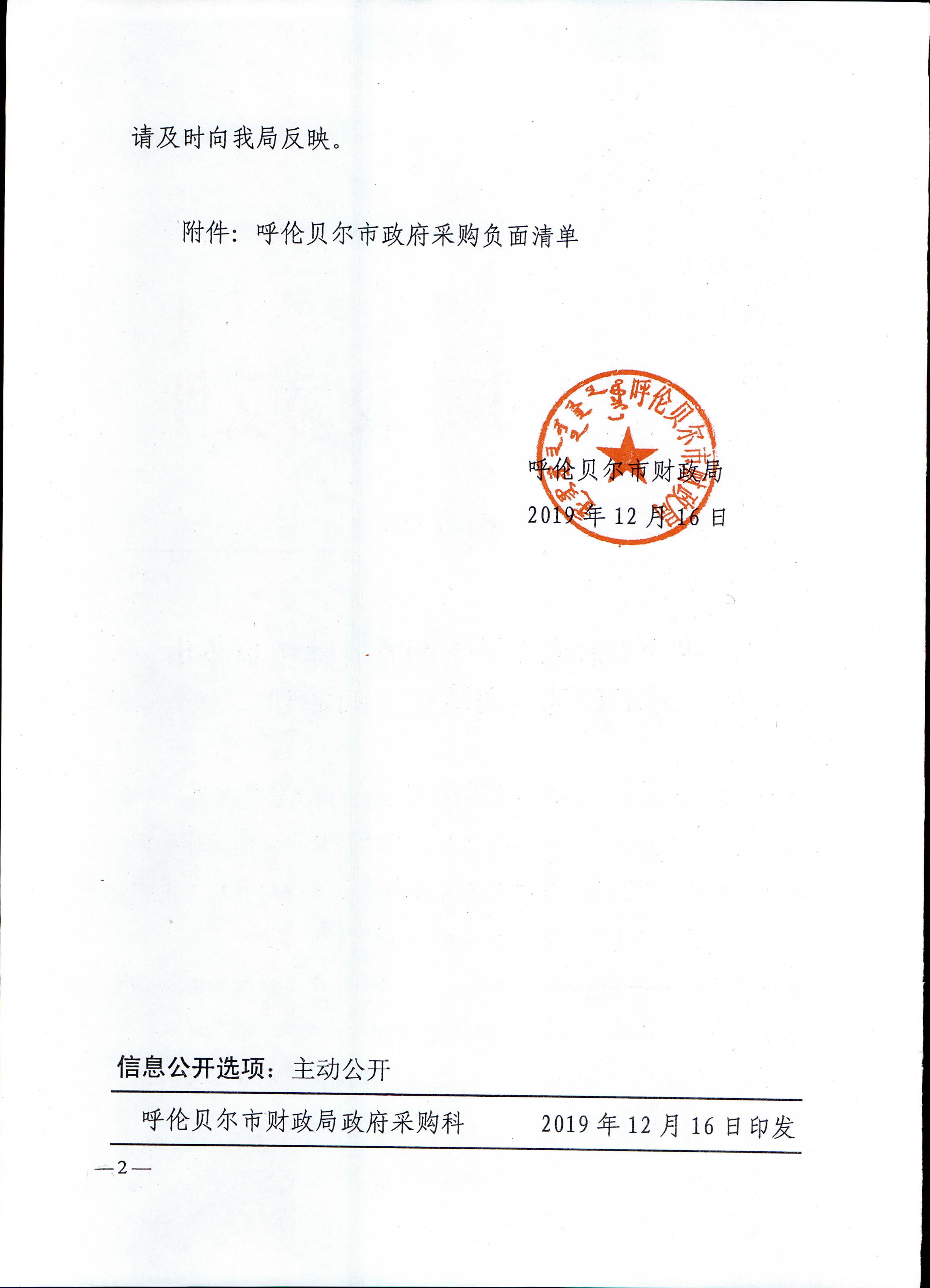 关于转发《呼伦贝尔市财政局关于印发<呼伦贝尔市政府采购负面清单>的通知》的通知
