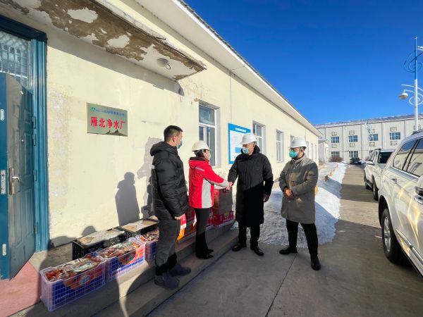 新春佳节来临之际,旗政协副主席、大雁镇党委书记姚继明、党委副书记、镇长杜晨等一行四人走访慰问山高城市服务有限公司,亲切走访慰问坚守岗位的一线干部职工,并致以新春的问候和美好的祝福,把党和政府的温暖送到他们心坎上。
