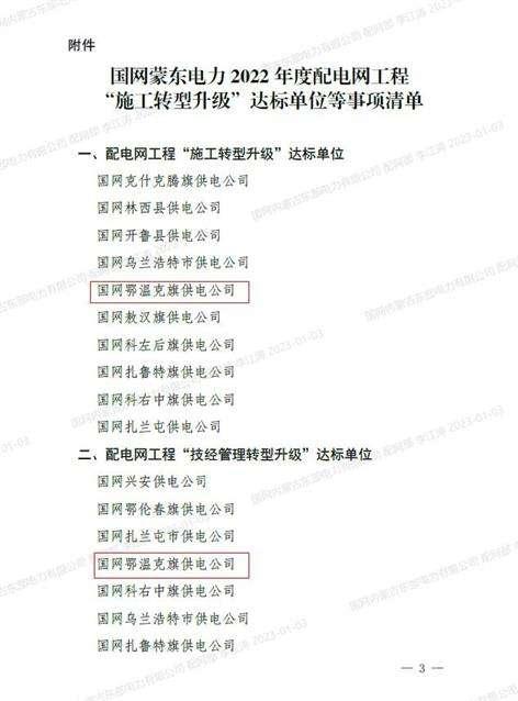 2022年底,荣获国网蒙东电力配电网工程“施工转型升级”达标单位、国网蒙东电力配电网工程“技经管理转型升级”达标单位两项殊荣!