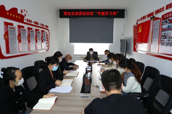 为全面贯彻落实党的二十大精神,坚持不懈用习近平新时代中国特色社会主义思想凝心铸魂、指导实践,不断提升统战工作水平,鄂温克族自治旗委统战部计划利用2个月的时间,组织全体干部职工开展党的二十大精神、党章党纪党规、习近平总书记关于做好新时代党的统一战线工作的重要思想等内容的8个“专题学习周”活动。2月9日,鄂温克族自治旗委常委、统战部部长雪萍主持召开部机关工作会议,在深入学习党的二十大报告中,“专题学习周”活动正式拉开序幕。