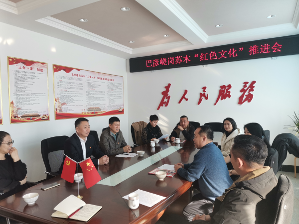 随后在苏木会议室,巴彦嵯岗苏木党委、政府和内蒙古美纳科技有限公司进行了会谈。苏木领导介绍我苏木自然资源丰富、文化底蕴深厚,在积极推进乡村振兴的道路上,坚定不移走以生态优先、绿色发展为导向的高质量发展新路子,积极推动为红色文化赋能,在不破坏生态环境基础上,不搞大拆大建,盘活红色旅游文化资源,促进牧民群众致富增收,带动好我苏木及周边地区第三产业协同发展。