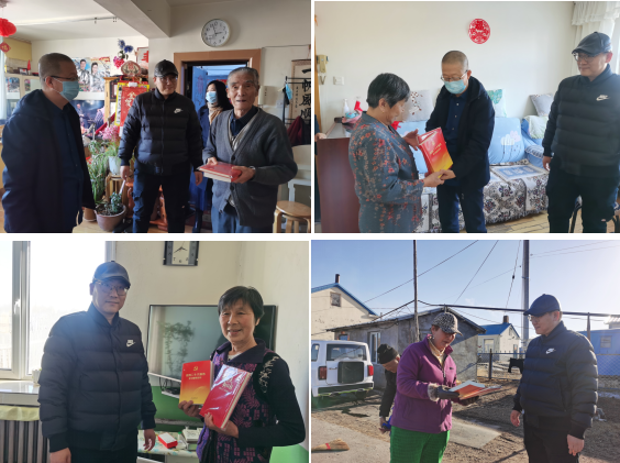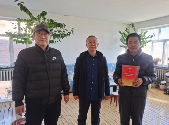 镇党委副书记、政法委员、统战委员金子彪等以入户走访形式看望辖区部分年龄偏大,身体欠佳、行动不便的老党员,面对面向老党员宣讲党的二十大精神,并将《党的二十大报告学习辅导百问》学习资料、学习笔记本送到嘎查社区老党员手中,帮助老党员更加准确理解党的二十大精神。宣贯之余,还详细了解老党员家庭生活、身体健康状况和各方面需求等。通过面对面沟通谈心,让老同志感受组织的温暖,鼓励他们坚持学习,进一步坚定政治信念,继续发挥余热。