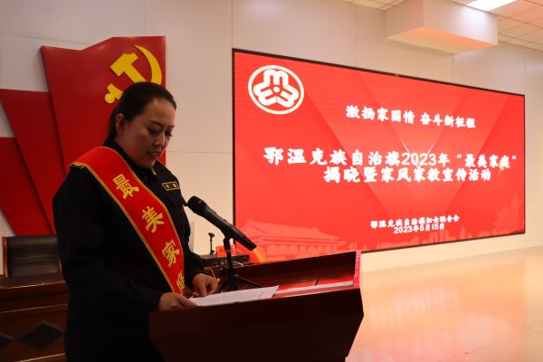 自治区“最美家庭”甘迪拉、呼伦贝尔市“最美家庭”单书华、鄂温克族自治旗“最美家庭”李薇分别分享了他们各自家庭和谐和睦每个成员并默默奉献本职、耕耘三尺讲台育满天桃李且教子有方、勇于担当善于作为舍小家为大家的感人事迹,充分展现了“最美家庭”爱国爱家、相亲相爱、向上向善、共建共享的社会主义家庭文明新风尚。