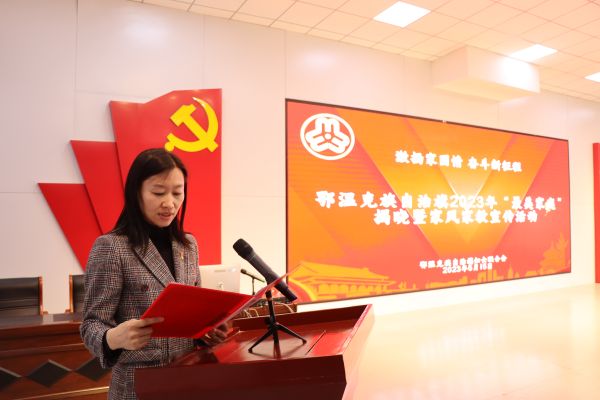为深入学习贯彻党的二十大精神,贯彻落实习近平总书记关于注重家庭、注重家教、注重家风的重要指示精神,推进“家家幸福安康工程”深入实施,大力培树践行新时代家庭观,弘扬社会主义家庭文明新风尚的家庭典型,营造重视家庭文明建设、弘扬家庭美德、树立良好家风的氛围,5月15日上午,“激扬家国情 奋斗新征程”——鄂温克族自治旗2023年“最美家庭”揭晓暨家风家教宣传活动在巴彦托海镇举行。鄂温克族自治旗妇联十届执委、部分旗直机关妇委会主任、各级“最美家庭”代表参加活动。