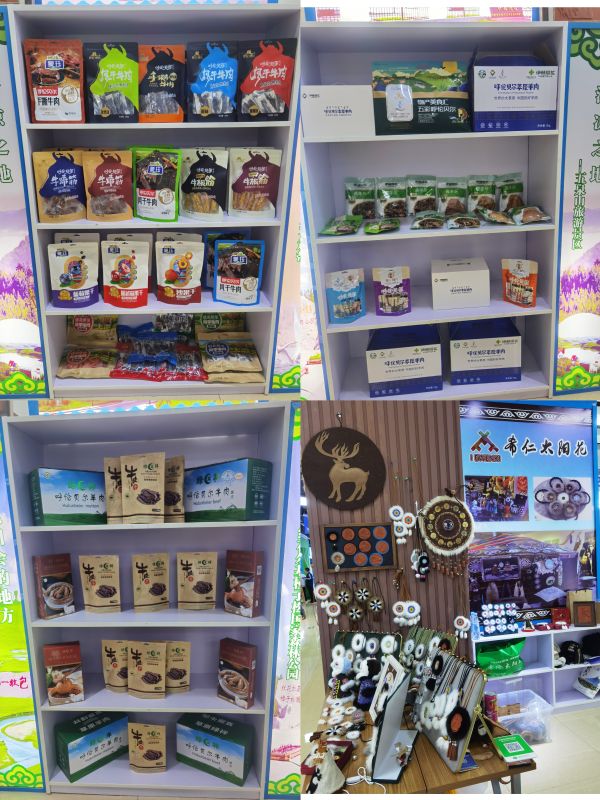展会以“共享合作发展新机遇 共建向北开放桥头堡”为主题,采取“线上+线下”融合布展的模式。鄂温克族自治旗非遗传承人、太阳花手工艺品创作者伊拉嘎为呼伦贝尔市委书记高润喜和其他巡馆领导介绍了鄂温克族自治旗特色产品和太阳花民族文化。展会期间鄂温克族自治旗展馆人头攒动,其中牛肉干、牛板筋等休闲食品,太阳花、皮画等文创产品深受消费者欢迎。