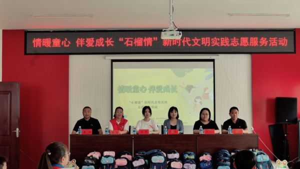 活动以党的二十大精神、习近平新时代中国特色社会主义思想为指引,将志愿服务与安全教育、红色教育相结合,通过喜闻乐见的形式让孩子们对安全防护、民族团结有了更深地了解。孩子们用清澈的声音诵读着党的二十大精神、民族团结金句,感受着语言文字的魅力及其深刻内涵。随后,孩子们将一朵朵石榴花挂在石榴树上,形成一幅美丽的“石榴情”。