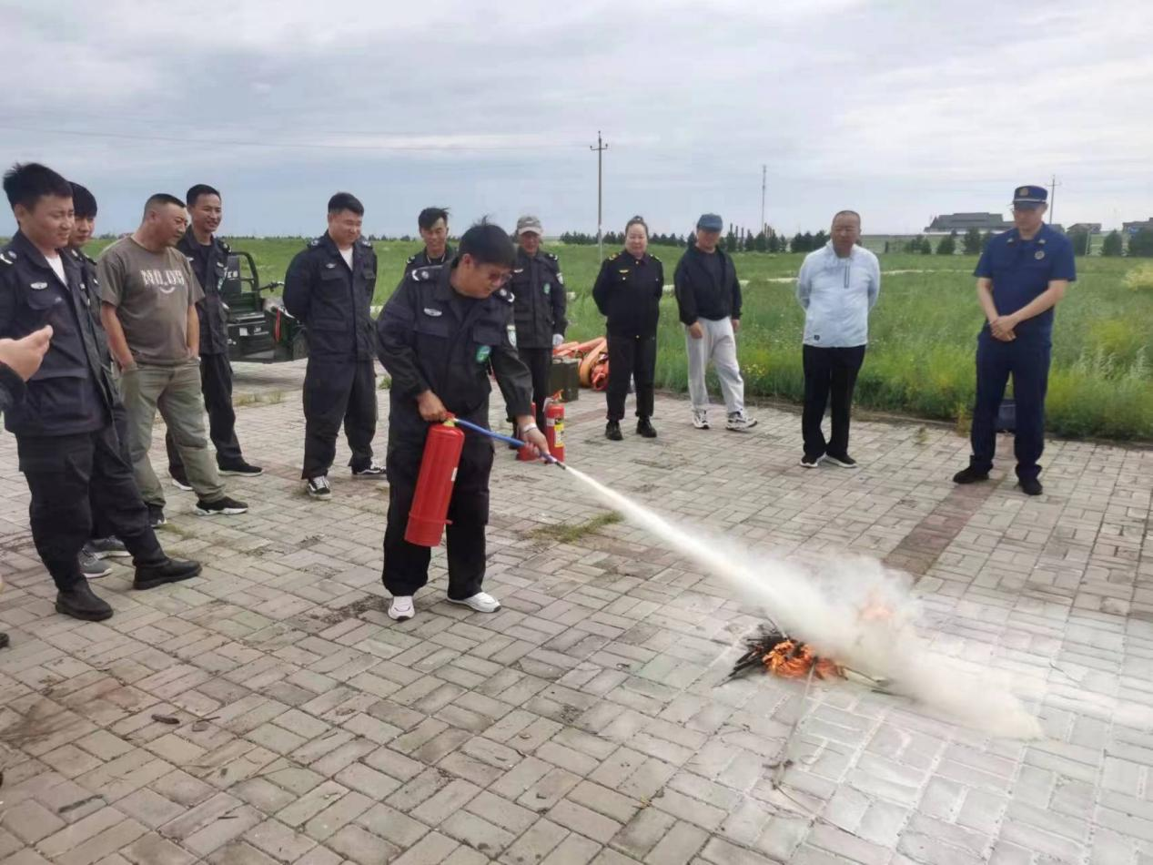 培训会后,专家对灭火器、风力灭火机的使用和排除故障的方法进行指导,并在现场点燃木材,分别使用灭火器、风力灭火机等设备,快速、安全、有序地“扑灭”了现场的明火的演练。