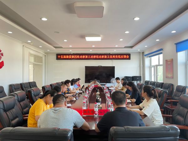 7月26日,十五届旗委第四轮巡察第三巡察组在旗工信局会议室召开巡察旗工信局党组情况反馈会议。旗委第三巡察组组长刘建海、副组长牟珊珊、联络员安春磊;旗纪委监委第四纪检监察室干事美丽,旗委组织部干部教育监督办干事隋缘出席会议。工信局党组领导班子成员、各股室负责人、所属事业单位负责人参加会议。会议由工信局党组书记、局长樊兴萍主持。