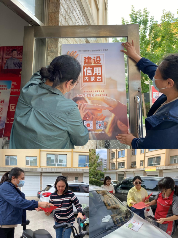 其次,支部党员向社区居民发放《内蒙古自治区公共信用管理条例》、《征信业管理条例》等宣传单,并在社区党群服务中心张贴信用宣传海报,进一步规范征信活动,推进社会信用体系建设。