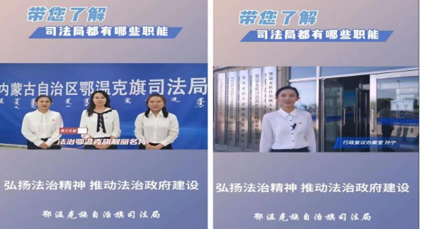 打造130平方米的社会主义法治文化教育基地,围绕新中国法治建设进程,通过展板、声像及影音设备的配合,展示社会主义法治文化的蓬勃发展及我旗法治文化建设取得的成效,成为我旗干部群众沉浸式学法的重要窗口和阵地。创建“希冉”小小普法员培训基地,制作“希冉普法微课堂”“法律进校园,护航青春梦想”等栏目。组建“鄂温克族自治旗司法行政新媒体小分队”,自编自导创作了展现新时代司法行政干警蓬勃向上精神面貌的短片《讴歌新时代共筑中国梦司法青年有话说》、介绍司法行政机关职能职责的短视频《弘扬法治精神 推动法治政府建设》、展示“八五”普法中期成果亮点的短片《法在身边》等有质量、有分量、有关注度的宣传作品,有效提升了社会关注度和群众知晓率,切实增强了普法宣传实效。