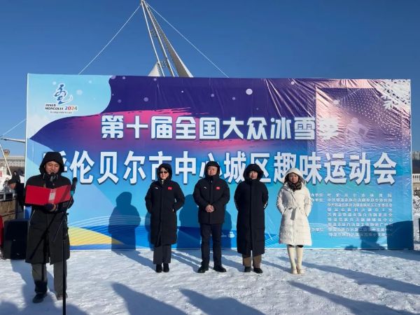 1月19日,鄂温克族自治旗第十届全国大众冰雪季呼伦贝尔市中心城区趣味运动会在新区市民公园冰湖面举行,旗委常委、宣传部部长罗志刚出席活动。