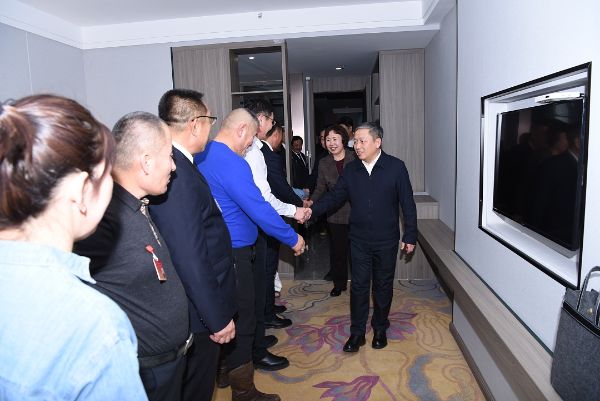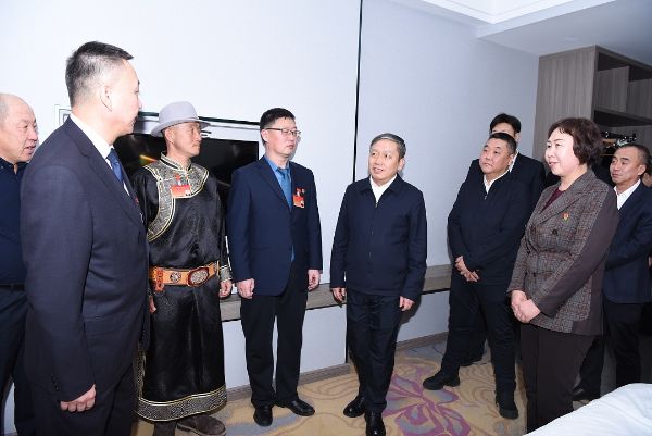在代表、委员驻地,王君一行与大家一一握手,亲切交谈,向他们致以诚挚问候,感谢他们对全旗各项工作的大力支持和为经济社会发展作出的积极贡献。