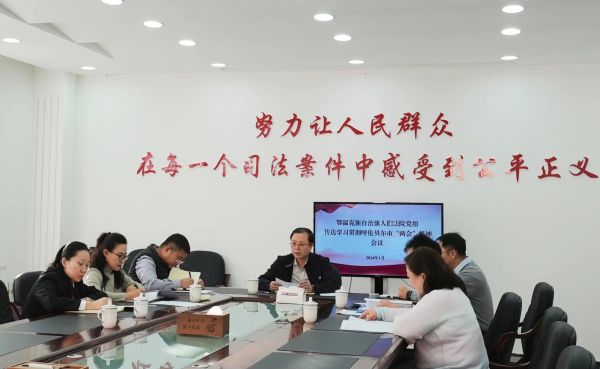 为深入学习领会呼伦贝尔市两会精神、范巧兰院长在呼伦贝尔市两会法院工作报告精神,提升法院人员政治领悟力、政治执行力、政治判断力。1月23日,鄂温克族自治旗人民法院党组召开传达学习贯彻呼伦贝尔市两会精神会议。党组书记、院长安志国主持会议,全体班子成员参加会议。