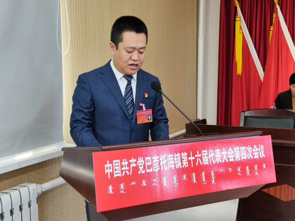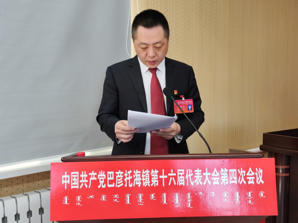 为接续奋进高质量发展新征程,动员全镇共产党员和各族人民群众贯彻落实党的二十大精神,推进全镇各项事业全面进步,3月21日上午,中国共产党巴彦托海镇第十六次代表大会举行第四次会议。鄂温克族自治旗委组织部党员教育与人才中心主任马涛同志到会指导。出席这次会议的有正式代表53人,列席代表10人。