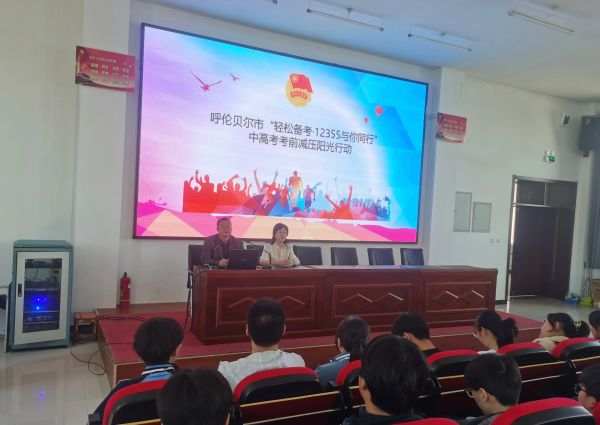 讲座邀请呼伦贝尔青少年心理研究会会长祁金霞进行心理辅导讲座。祁会长从学生的现实出发,以着力解决学生考前面临的问题为重点,围绕考前如何调节情绪、如何建立强大自信、考前做好几件事等方面进行讲解,鼓励考生们以良好的心态面对考试,放下压力,轻装上阵,发挥出自己的最佳水平。
