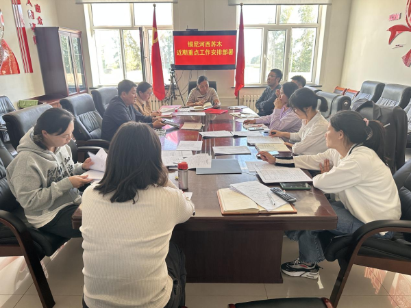 9月11日下午,锡尼河西苏木召开近期重点工作安排部署会。会议由苏木党委书记宝音图主持,党委副书记、苏木达安娜,领导班子成员、相关科室负责人参加会议。