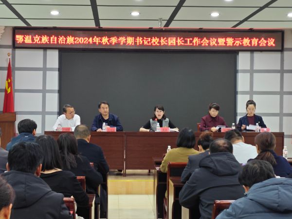 10月18日下午,鄂温克族自治旗教育局召开2024年秋季学期书记校长园长工作会议暨警示教育会议。教育局班子成员、各中小学校书记、校长、幼儿园园长、直属单位负责人及各办室主任共40余人参加了会议,会议由教育党工委书记、教育局党组书记、局长玉欣主持。