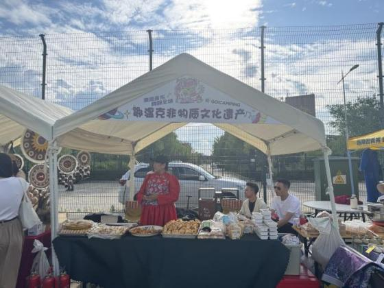 在活动现场,鄂温克族自治旗文化馆展示了多项非物质文化遗产项目,让广大游客和音乐爱好者亲身体验了我旗独特的非遗文化。在音乐的热烈氛围中,游客们还品尝到了具有特色的非遗美食,如新鲜出炉的酸奶果子、布里亚特包子、千层酥和千层糕等传统面点,深受游客喜爱。同时,传统的“太阳花”和“皮雕制品”也成为了游客的优选纪念品。文创产品在继承传统元素的基础上,融入现代审美,与音乐节的多元融合氛围相得益彰。