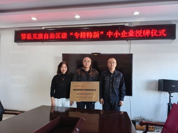 近日,鄂温克族自治旗工业和信息化局举行专精特新中小企业授牌仪式,向鄂温克族自治旗工业企业获评内蒙古自治区专精特新中小企业的企业授牌。此次授牌旨在表彰先进、树立典型,进一步激发全旗中小企业走专精特新发展道路的积极性,推动中小企业高质量发展。