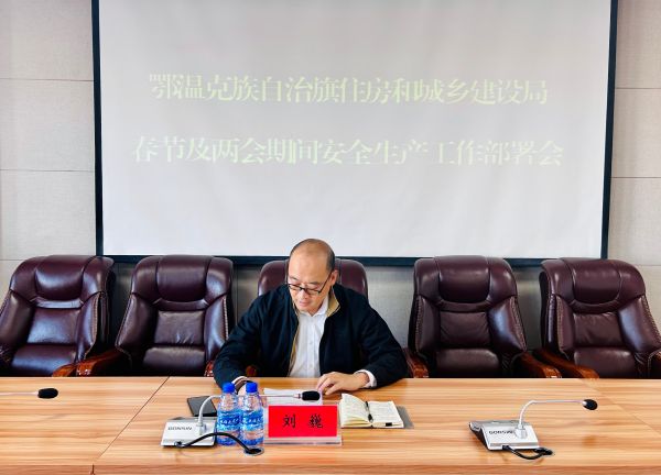 会议要求,当前正值岁末年初,春节临近、全国两会将至,住建系统各部门要认真贯彻落实习近平总书记关于安全生产重要指示精神,全面落实党中央、国务院和自治区、呼伦贝尔市、鄂温克族自治旗党委、政府部署要求,充分认识做好岁末年初及春节、两会期间安全生产工作的极端重要性和必要性,进一步强化风险意识,树牢底线思维,从严从实抓好防范应对各项工作,全面排查建筑工地、燃气、供水、供热、物业企业各项工作并督促各企业开展自查,加强对办公场所的水、电、暖、消防设施安全隐患排查,时刻绷紧安全之弦,确保住建领域安全稳定。
