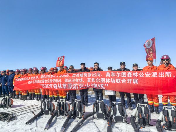 4月2日,鄂温克族自治旗莫和尔图林场、巴彦嵯岗苏木人民政府、锡尼河东苏木人民政府、巴彦嵯岗派出所、莫和尔图森林公安派出所、莫和尔图国家湿地公园管理局及锡尼河林场等七家单位联合开展2026年森林草原防灭火实战演练。