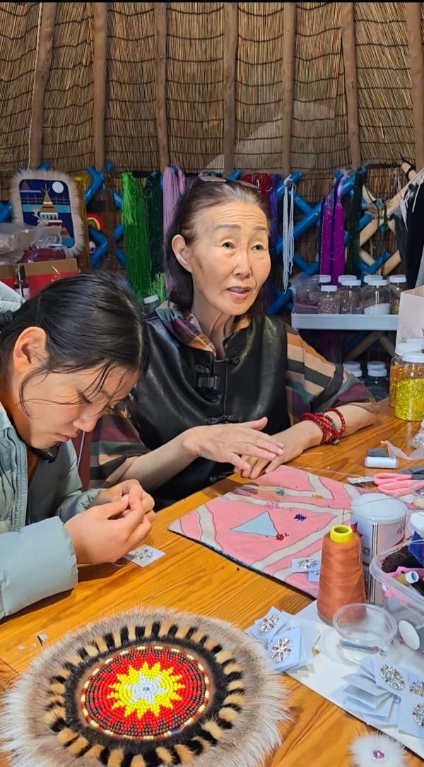 深度探访非遗文化瑰宝。参观鄂温克族自治旗创业园太阳花制作店,由索伦鄂温克族自治旗鄂温克族研究会会长阿拉腾巴图讲解鄂温克历史文化及现代吉祥物太阳花来源,刺绣传承人乌兰图雅老人手把手教那雯刺绣,深化对鄂温克族非遗文化的认知。采访蒙医传承人斯仁道力玛大夫,系统学习蒙医蒙药制作、采药等细节,了解传统游牧文化中蒙医蒙药的药用价值,探索其在现代医疗中的传承与应用路径。