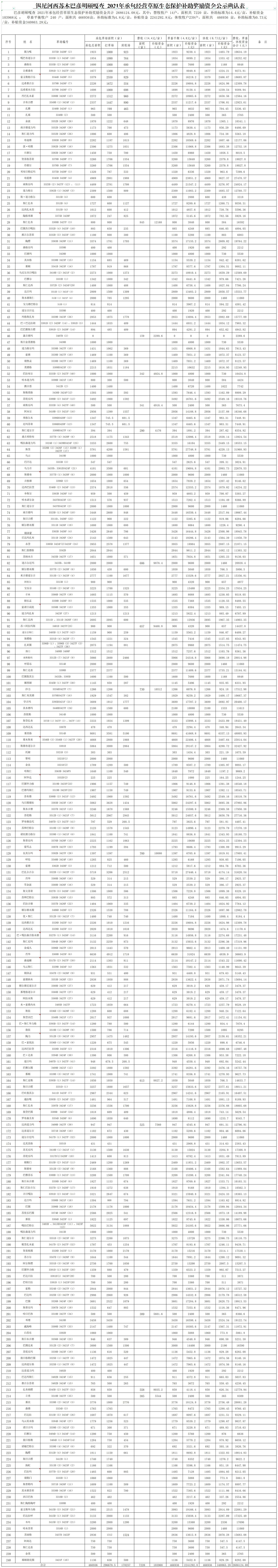 锡尼河西苏木巴彦胡硕嘎查 2021年承包经营草原生态保护补助奖励资金公示确认表