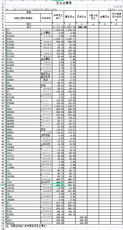 本年支出与预算相比增加949.45万元,增加主要原因:一是“新冠肺炎”疫情防控经费支出19.09万元;二是大雁镇棚户区改造贷款本金支出662万元;三是社区为民办实事资金支出68.73万元;四是大雁镇文化广场建设100万元;五是社会化职能管理支出206.56万元;六是信访维稳经费支出14万元;七是政法委维稳经费及网格员工资8.75万元;八是旗农科局疫病防疫经费12.58万元;九是人大换届会议会议经费2.88万元;十是社区党组织工作经费支出5万元;十一是基层武装经费2万元;十二是文化馆免开放2.03万元;十三是退休人员抚恤金、丧葬费118.6万元;十四是民政临时救济4.5万元;十五是退耕还林还草工作经费0.94万元;十六是其他商业流通事务经费5.92万元;十七是退休人员职业年金做实20.03万元;十八是收到雁鑫锅炉房维修费发票冲减其他应收款列支维修费34.96万元。
