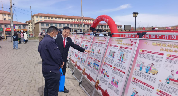 五月是“民族政策宣传月”“民法典宣传月”,为提升广大居民群众对民族政策、民族法治、民法典等法律法规的知悉度,5月16日上午,大雁镇在“石榴籽”广场举办集中宣传活动。大雁镇司法所、大雁法庭、向华派出所、检察院、市场监督管理所、鄂温克族自治旗交通运输综合行政执法大队大雁中队、党群服务中心及大雁镇机关科室,共计10余个部门、单位,50余人参加宣传活动。