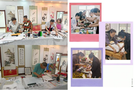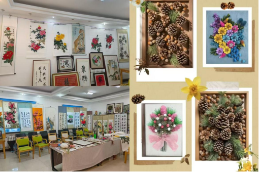 伊敏河镇养老服务中心秉持“文化养老、艺术养心”理念,开设老年兴趣爱好班,涵盖书法、国画、工笔、松塔手工制作、手工刺绣等课程。组建由专业教师与志愿者构成的教学团队,针对老年人零基础、学习节奏慢的特点,采用分层教学、一对一指导模式,从基础的握笔姿势、色彩搭配教起,助力老年学员掌握艺术创作技巧,为展览作品产出筑牢根基。