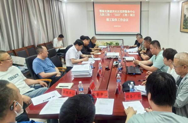 近日,旗发改委组织召开鄂温克族自治旗瑟宾社区党群服务中心人防工程项目竣工验收会议,呼伦贝尔市国动办主任董仕民、旗委常委、常务副旗长杨磊到会指导,市人防工程科、质监站,旗国动办及项目五方参建单位、人防设备厂家等参加竣工验收会议。