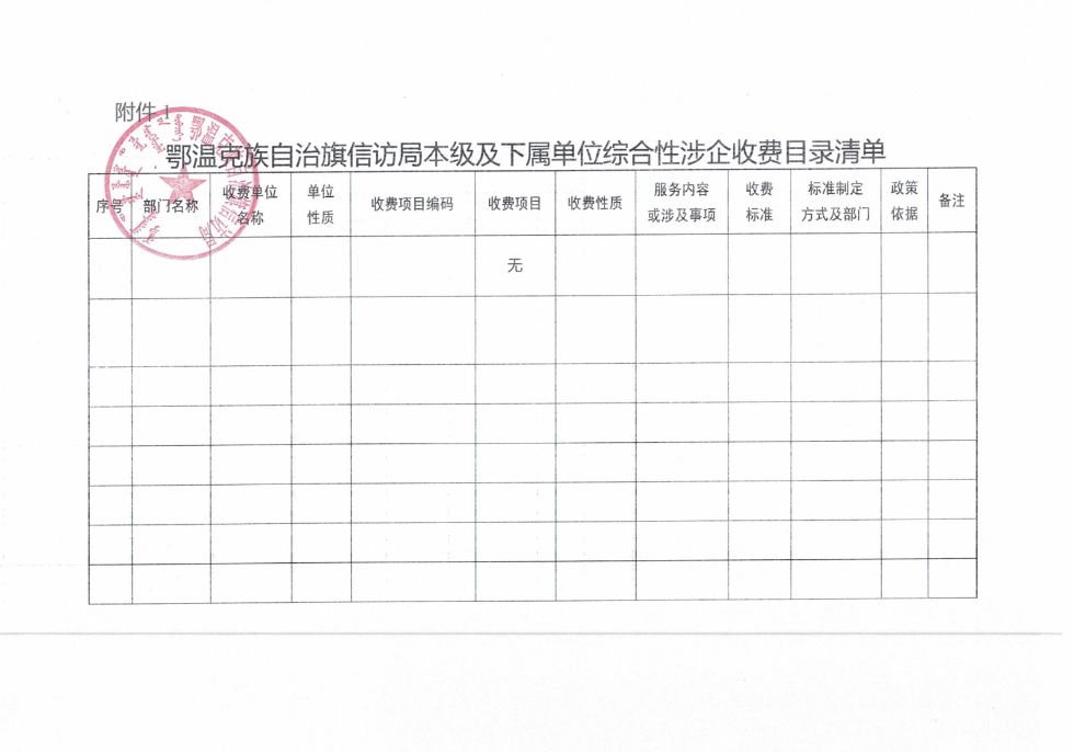 鄂温克族自治旗信访局本级及下属单位综合性涉企收费目录清单